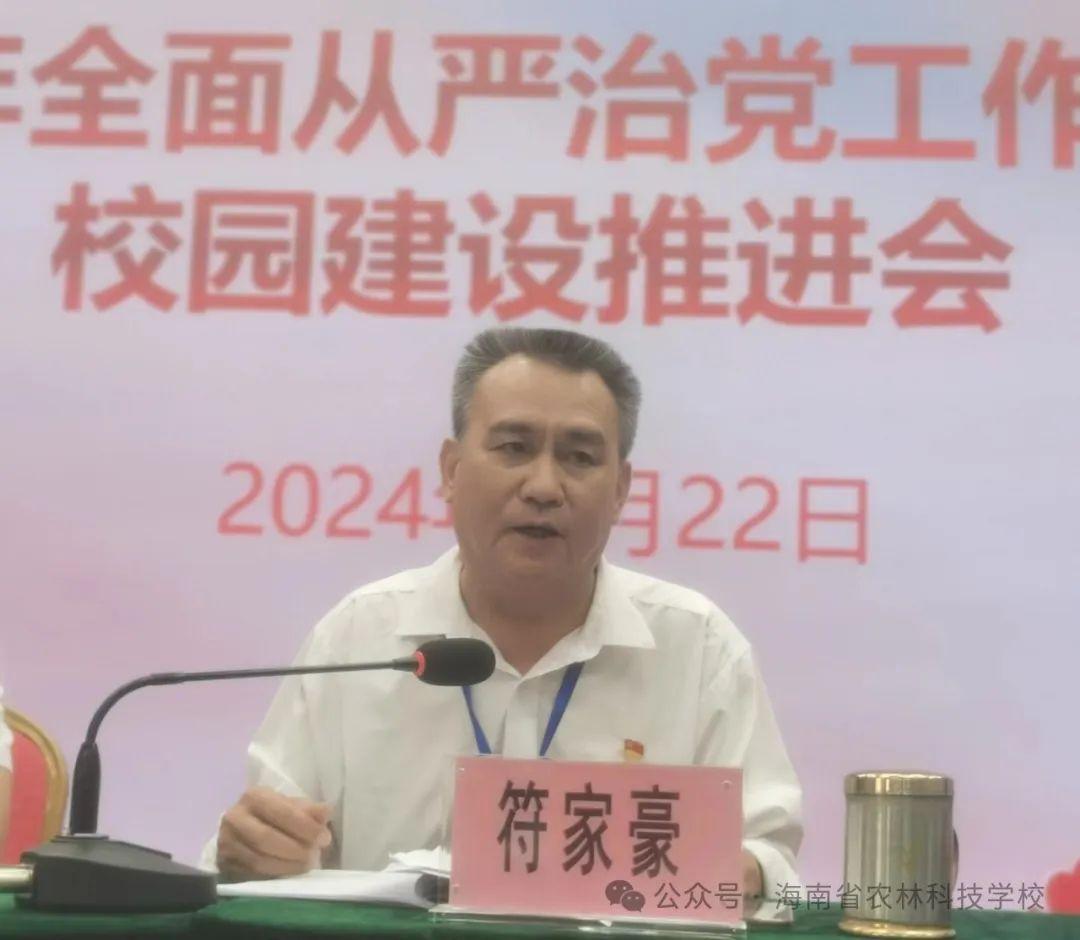 3月22日下午,海南省农林科技学校党委召开2024年全面从严治党工作暨清廉校园建设推进会,会议深入学习贯彻习近平总书记关于党的自我革命的重要思想,贯彻落实中央纪委三次全会、省纪委八届三次全会和教育部及全省教育系统2024年全面从严治党工作暨清廉校园建设推进会议精神,回顾总结2023年学校全面从严治党工作,部署安排2024年工作。学校党委书记符家豪出席会议并作总结讲话。学校中层及以上干部、全体党员,财务人员参加会议,会议由党委委员郑学盛主持。