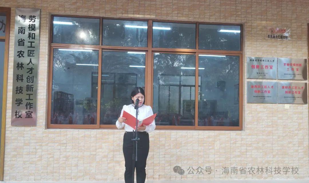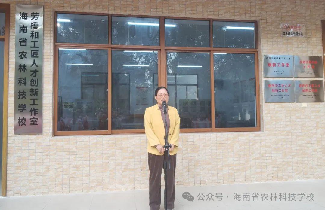 学校党委委员、副校长、工会主席王艳琼在揭牌致辞中针对我校劳模和工匠人才创新工作室创建,提出三点要求:一要充分发挥业务专长、技术优势和传帮带作用,积极围绕我校人才培养重点工作,有效开展乡村振兴、科技创新、服务创新活动,推动我校核心竞争力;二要对标海南省劳模和工匠人才创新工作室申报条件,明确工作职责、创新目标,要以点带面,充分发挥引领和示范带动作用,争取有更多工作室顺利命名;三要经常性开展技术培训、技术比武和业务交流活动,积极探索人才培养新思路、新模式、新方法,将工作室建设与教育教学、人才培养紧密结合起来,组织动员广大教职工在工作岗位建功立业,在劳动中实现人生价值。
