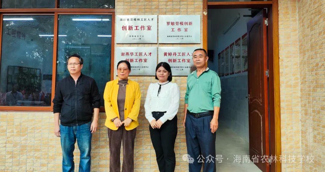 (学校领导和五指山市总工会领导共同为我校工作室揭牌)