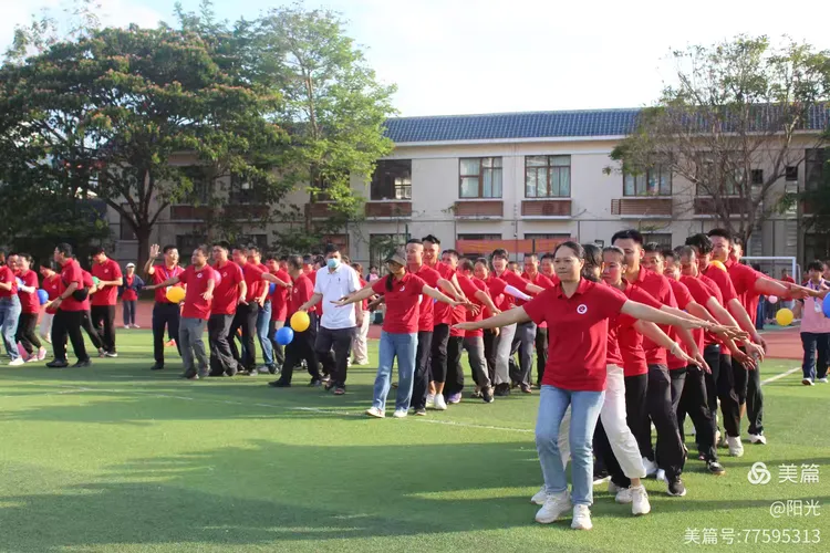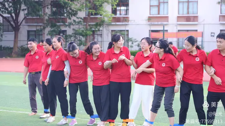 “十人九足”项目则是对团队默契的极大考验。每组十位老师将相邻的腿绑在一起,从起点共同走向终点。比赛前,各小组纷纷展开练习,不断调整步伐和节奏。正式比赛时,老师们相互搀扶,齐声喊着“一二一”的口号,一步一步坚定地向前迈进。有的小组凭借出色的默契,步伐稳健,迅速领先;有的小组在中途出现小失误,但大家不抱怨、不放弃,迅速调整状态,继续前进。这个项目不仅锻炼了老师们的团队协作能力,更增进了彼此之间的信任与友谊。