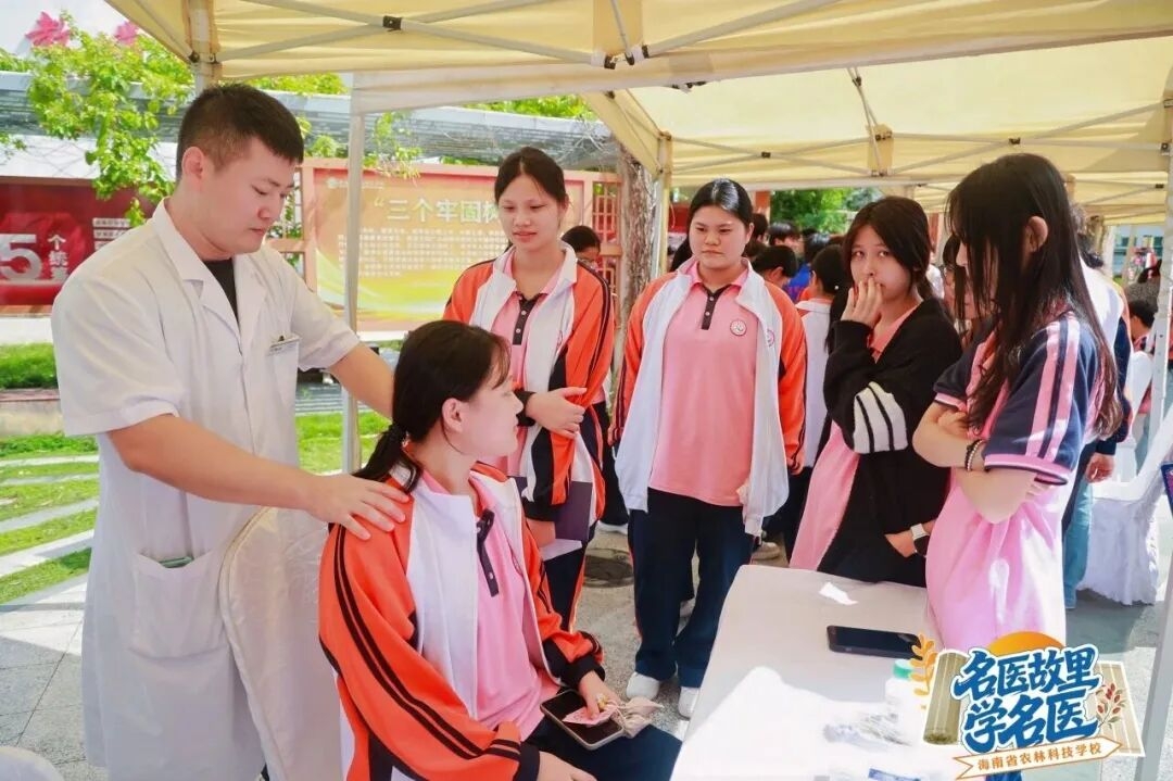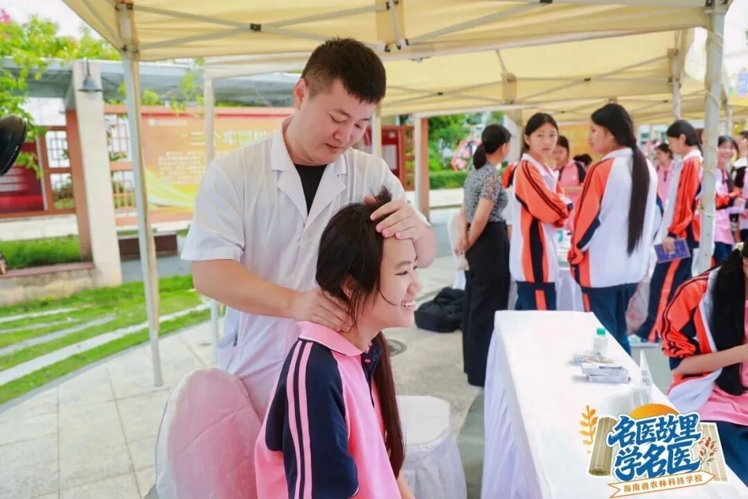 ??在五指山市中医医院医生们的指导下,同学们零距离接触了把脉看诊、推拿、肩颈放松、穴位按压等中医特色诊疗,通过亲身体验感受中医药的奇妙魅力。