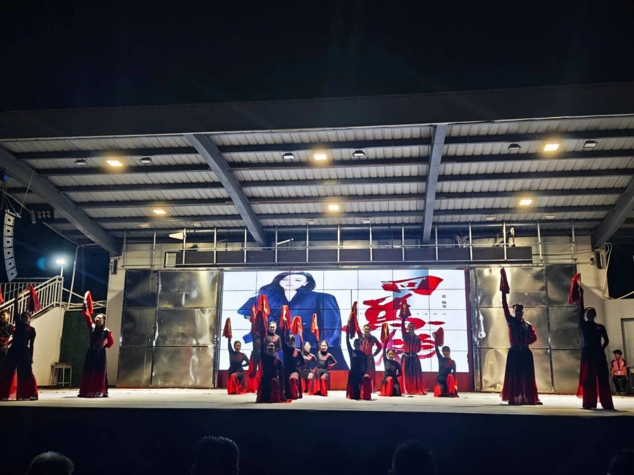 ??活动以开场舞《回马枪》拉开序幕,飒爽舞姿点燃全场氛围。随后,全体人员起立奏唱国歌,旋律回荡间凝聚爱国情怀与奋进力量。
