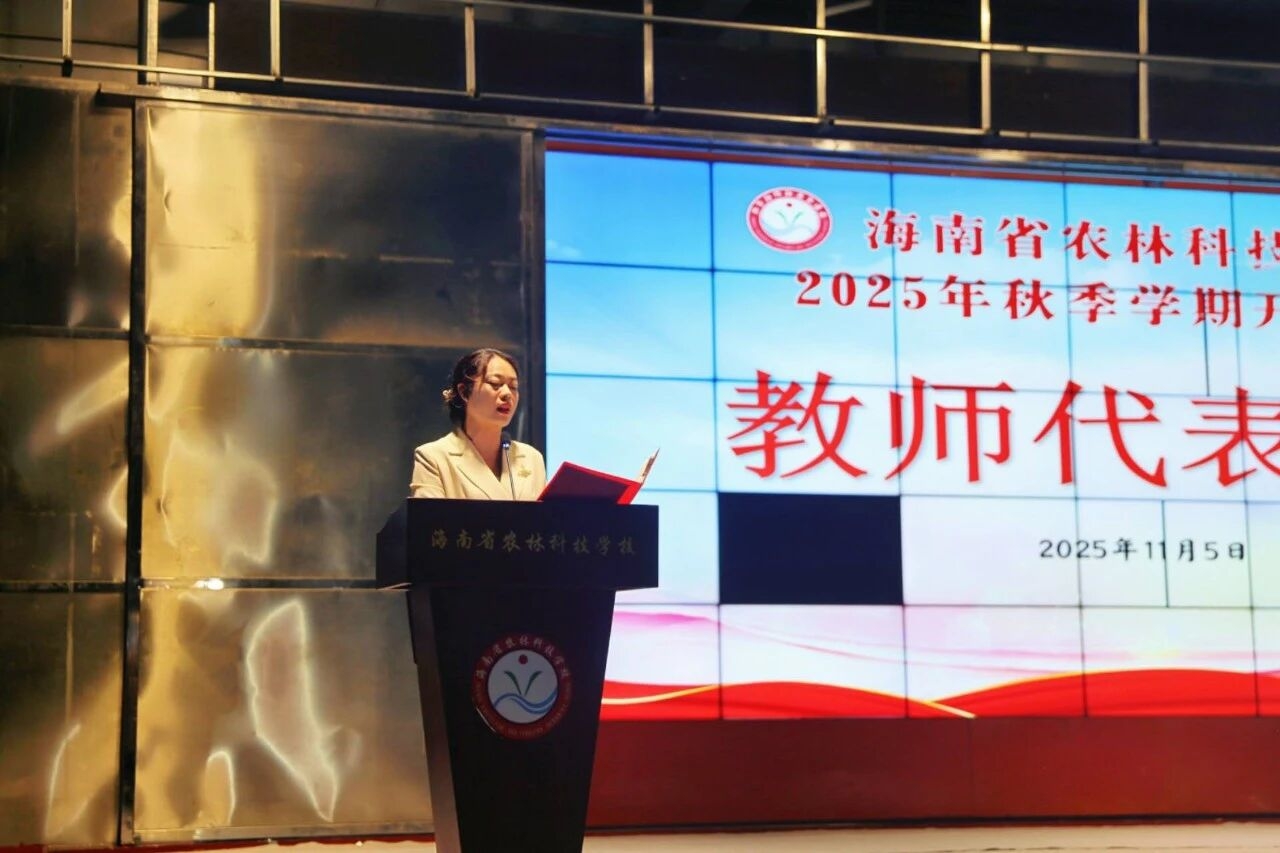 ??教师代表发言:25航空大专班班主任周丽蓉老师以“责任”为核心,分享教学理念,寄语新生珍惜校园时光,在探索中提升自我,在追梦中不负韶华。学生代表发言:24级平面大专班谭铭豪同学结合自身经历,鼓励新生积极参与校园活动、拓宽视野、锤炼本领;25级电商大专班王祺萱同学表达对校园生活新篇的期待,承诺以包容心态融入新集体,以勤勉态度执卷挥芳华。