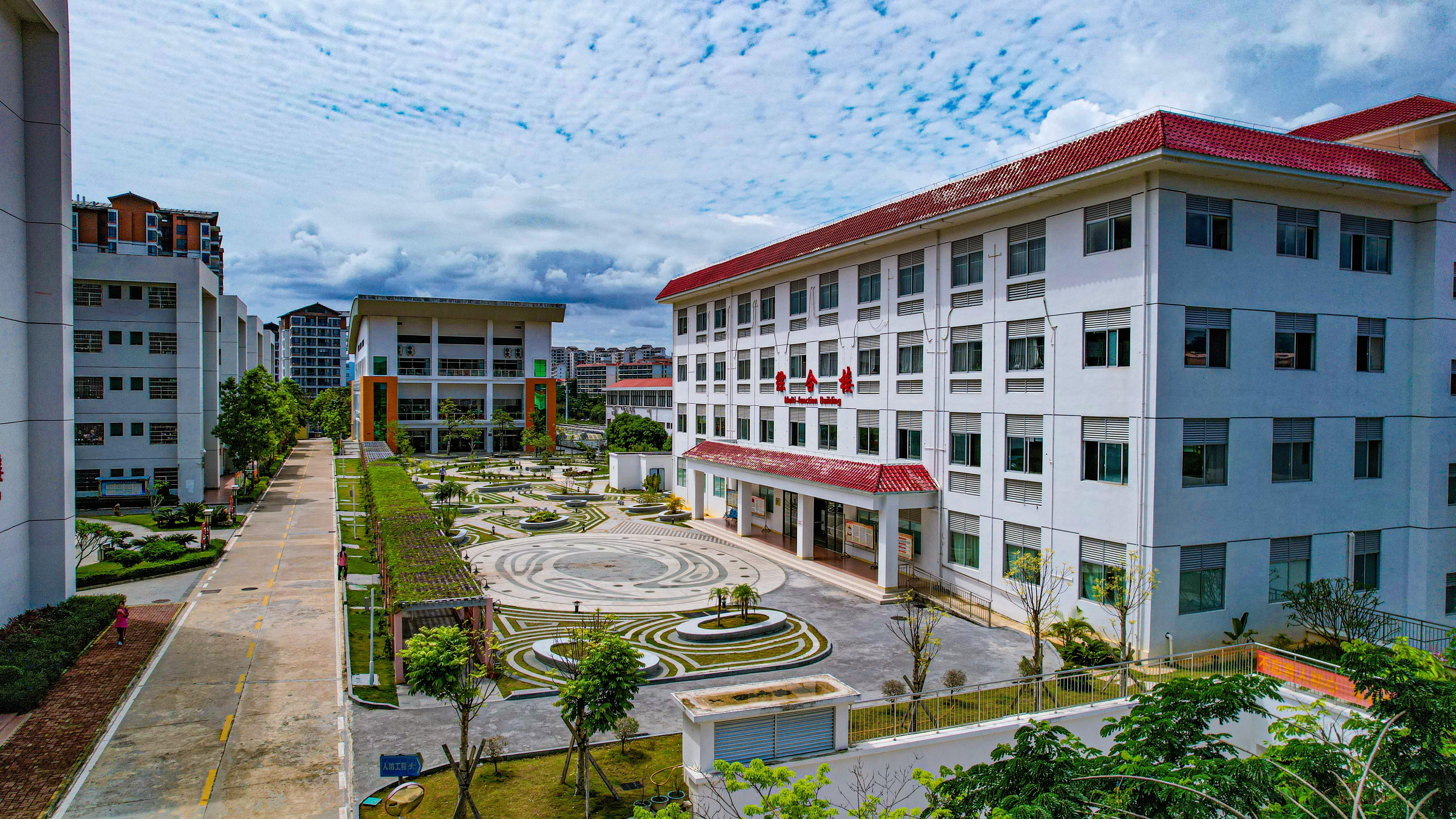 主校园位于五指山市中心地段,出行方便、背山面水、四季如春、环境宜居。中央和省财政投入2亿多元,配备了全新的教育教学环境和设施,室内运动场、艺术大礼堂、标准材质的塑胶跑道运动场,以及各专业实训设备一应俱全,WiFi全覆盖、热水全天候,为学生提供了良好的学习生活环境。每学期一次的专业技能大赛、一系列文艺体育活动、独具特色的德育主题活动,让学生快乐学习、文明有礼、健康成长。